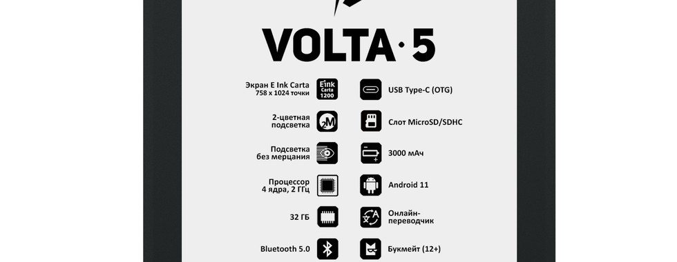 В продажу поступил новый ридер ONYX BOOX Volta 5. Модель продолжает популярную серию компактных 6-дюймовых ридеров, получив дисплей нового поколения Carta 1200. Аппаратная платформа ONYX BOOX Volta 5 реализована на базе современного 4-ядерного процессора, экран дополнен подсветкой и сенсорным управлением, установлен комбинированный модуль Wi-Fi и Bluetooth. Работает устройство под управлением ОС Android 11. Объем встроенной памяти модели увеличен до 32 ГБ.